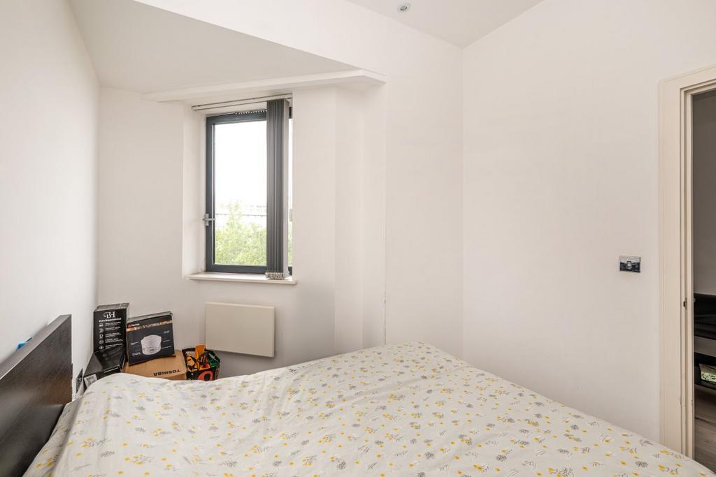 The double bedroom is generously sized, featuring built-in storage, while the modern bathroom is fitted with premium fixtures and a shower-over-bath.