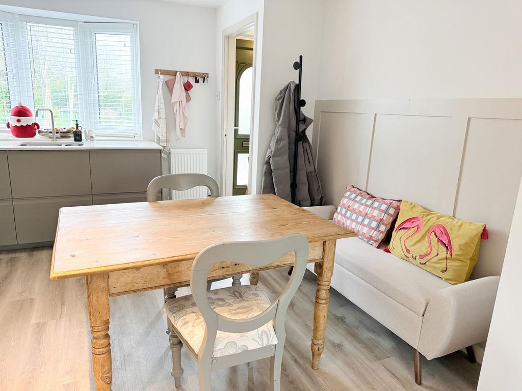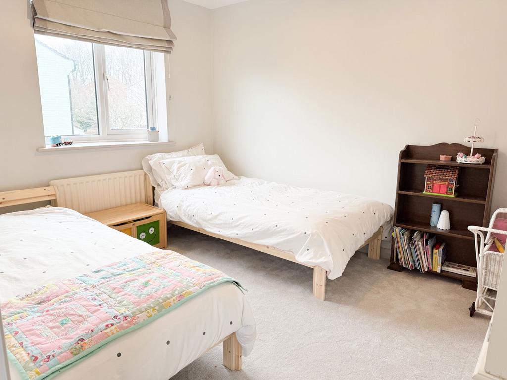 Upstairs, there are three well-proportioned bedrooms. The principal bedroom is a generous double, offering good storage and a quiet position within the property. The second bedroom is also a comfortable double, suitable for guests, children, or a home office if required. The third is a smaller single that could be used as a nursery, study, or dressing room. A modern family bathroom completes the first-floor accommodation, fitted with a clean, neutral suite.