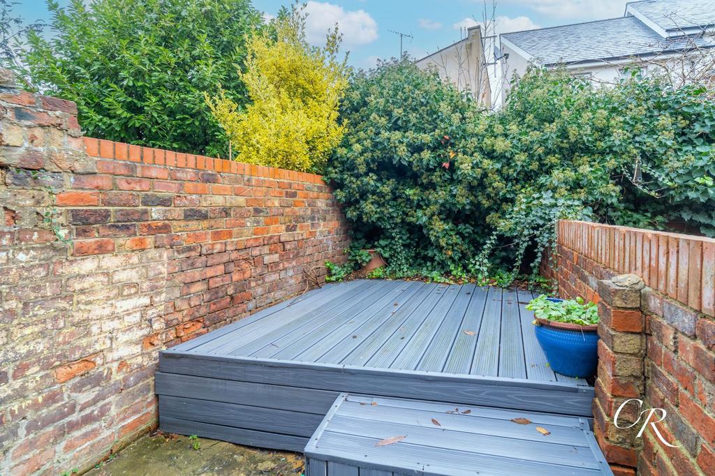 Garden: To the rear is an enclosed courtyard garden featuring a paved patio area and a raised decked section, ideal for outdoor dining and entertaining.