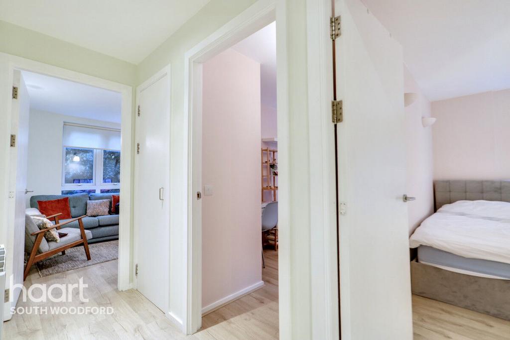 Surrounded by well-maintained communal gardens, this flat provides a tranquil setting while being just a short walk to South Woodford Station, offering excellent transport links. The bustling George Lane is also within easy reach, providing a variety of shops, cafés, and essential amenities. With good access to public transport and major road links, including the A406 and M11, commuting into London and beyond is seamless.