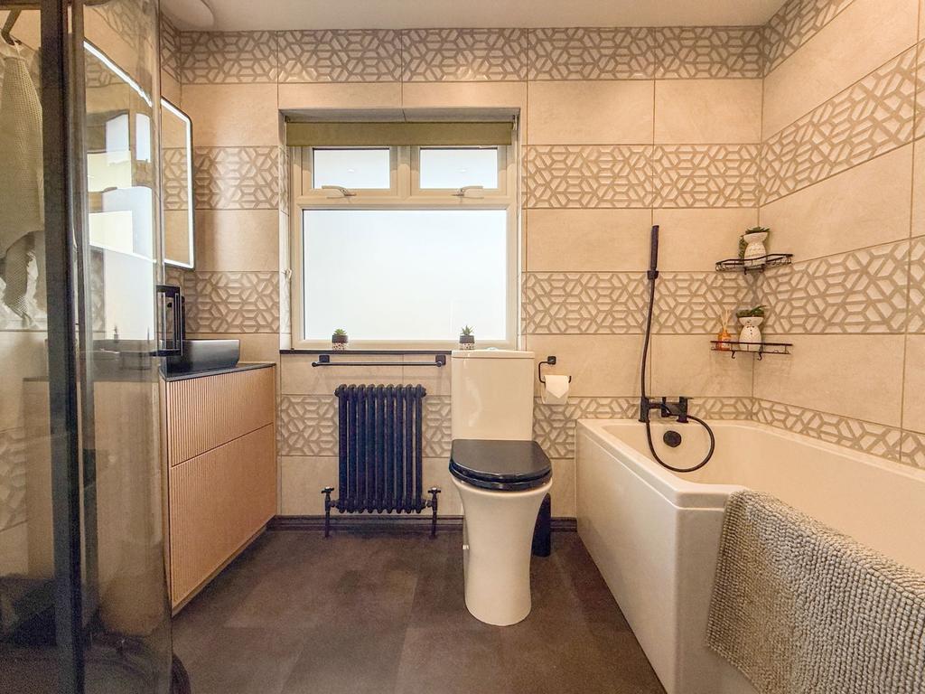 The kitchen has recently been upgraded and modernised by the current vendors and offers a uPVC double-glazed window, a one-and-a-half bowl single drainer sink inset into fitted worktops, and a range of modern matching shaker-style base cupboards, drawers, and coordinating wall cupboards with under-cupboard lighting. Integrated appliances include an induction hob, double electric oven, and dishwasher. There is also space for an American-style fridge freezer and inset spotlights. A glazed wooden door leads through to the rear lobby/utility area, which benefits from a uPVC double-glazed window, plumbing for a washing machine, access to the separate WC, and a useful storage cupboard. A uPVC double-glazed door provides access to the rear garden.