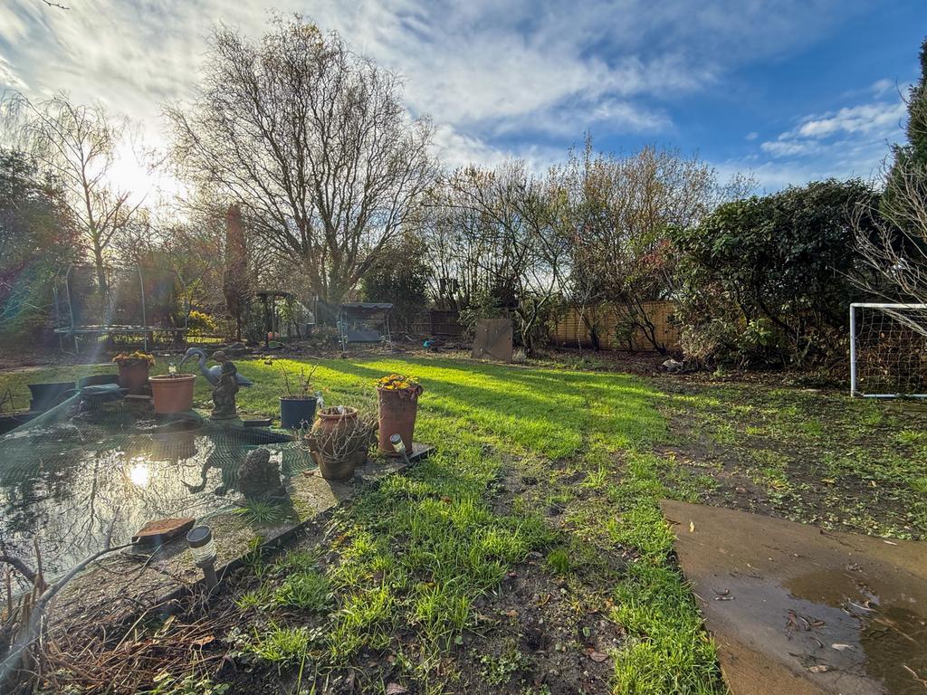The rear garden is a real feature of the property with it being larger than average in size and mainly laid to an expanse of lawned garden with bordering hedging and incorporating mature trees and shrubbery. There is also a feature pond and access to the dining room via steps and a set bi-folding doors. Access to the utility/porch is found via a separate door with an outside tap, a wooden shed and a pathway continuing around to the side and front.