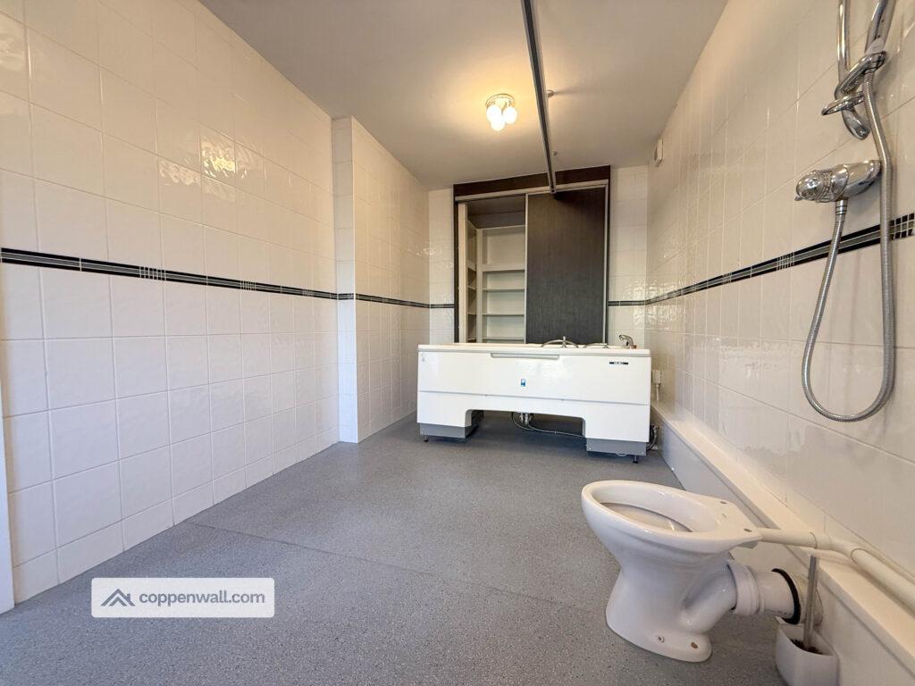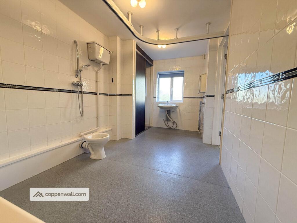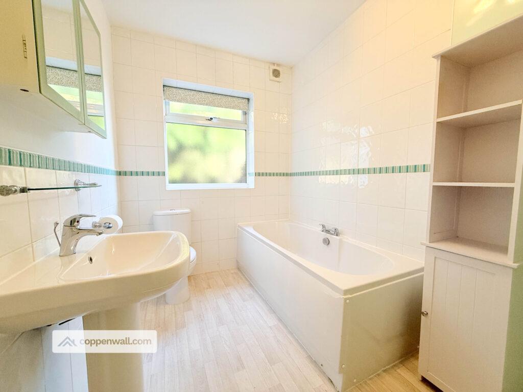 A significantly sized en-suite with a fitted bath, WC, wash basin and storage space. Rarely found in properties of this style and size.