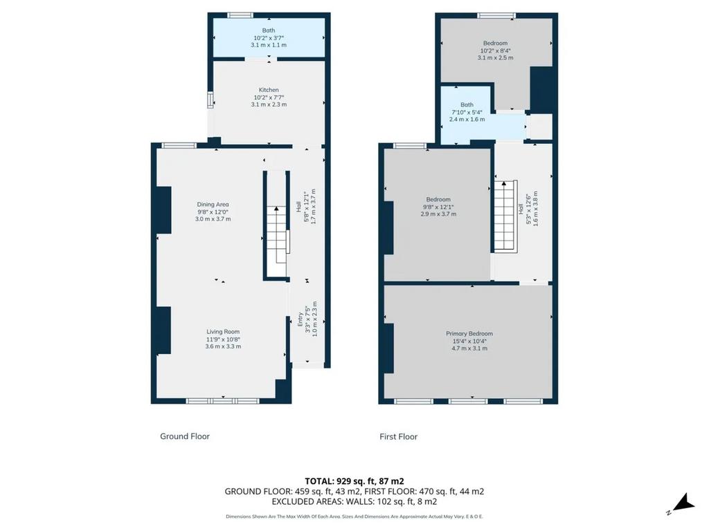 The property features three well-proportioned bedrooms, two bathrooms, and a spacious private rear garden. Arranged over the ground and first floors, the home spans approximately 929 sq. ft. and benefits from large windows, high ceilings, and an abundance of natural light, creating a bright and airy living environment throughout.