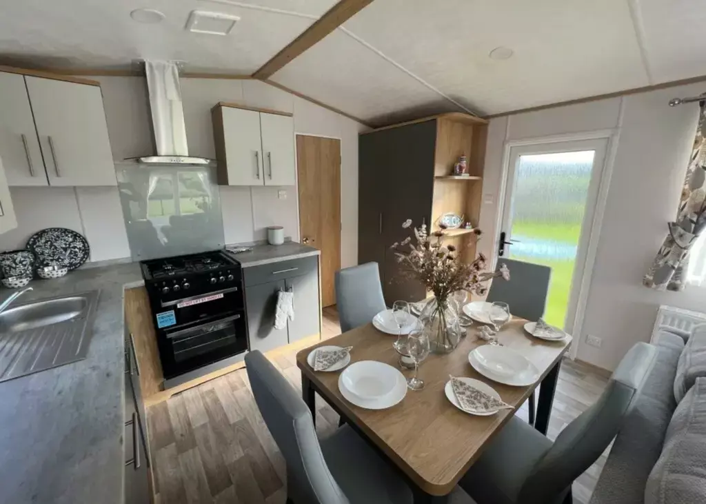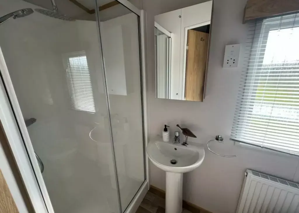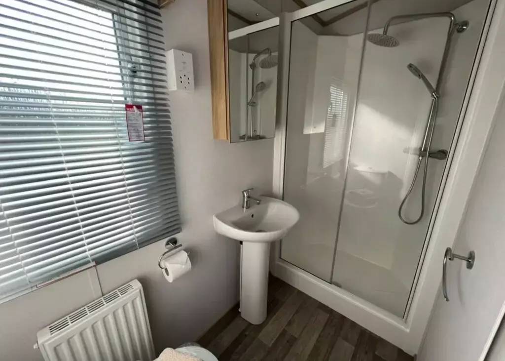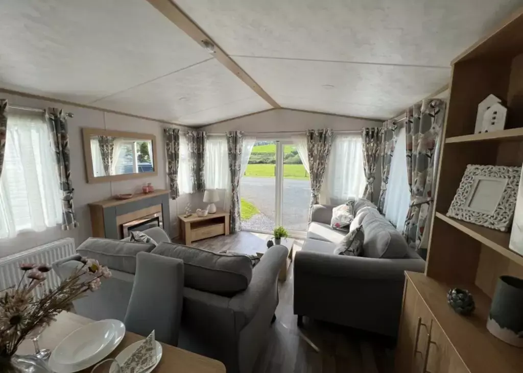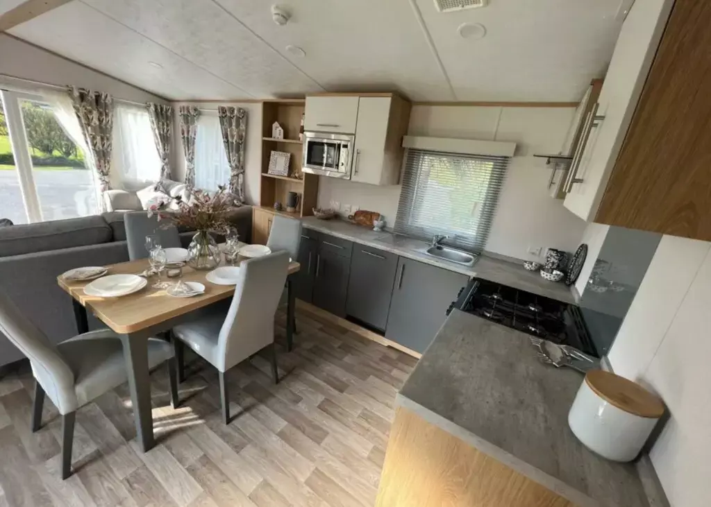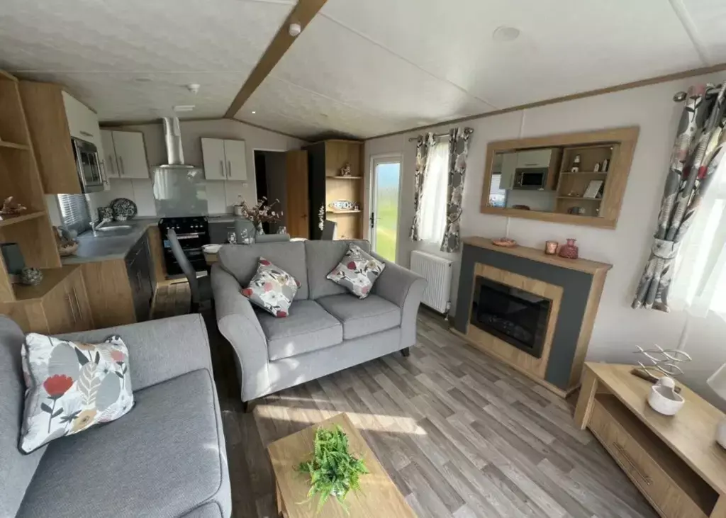 The open-concept living area features two large sofas, providing ample space for the whole family and seamlessly blending with the kitchen diner. This setup is perfect for gathering together for delicious meals or perhaps a fun games night.Slide open the living room doors, grab a drink, and soak up the distant sounds and smells of the sea while enjoying the sunset.When it's time for bed, cuddle up with a good book in your master bedroom, while the kids sleep soundly in one of the two additional bedrooms. The ensuite off the master bedroom ensures you have the luxury of privacy, and a second family shower room caters to everyone's needs.This caravan also offers ample storage for all your beach and adventure gear, making it the perfect holiday retreat.To celebrate Haulfryn’s 90th anniversary we’re offering 90% off next year’s site fees when you complete the purchase of any holiday home by 31st October 2025.*T&Cs apply.