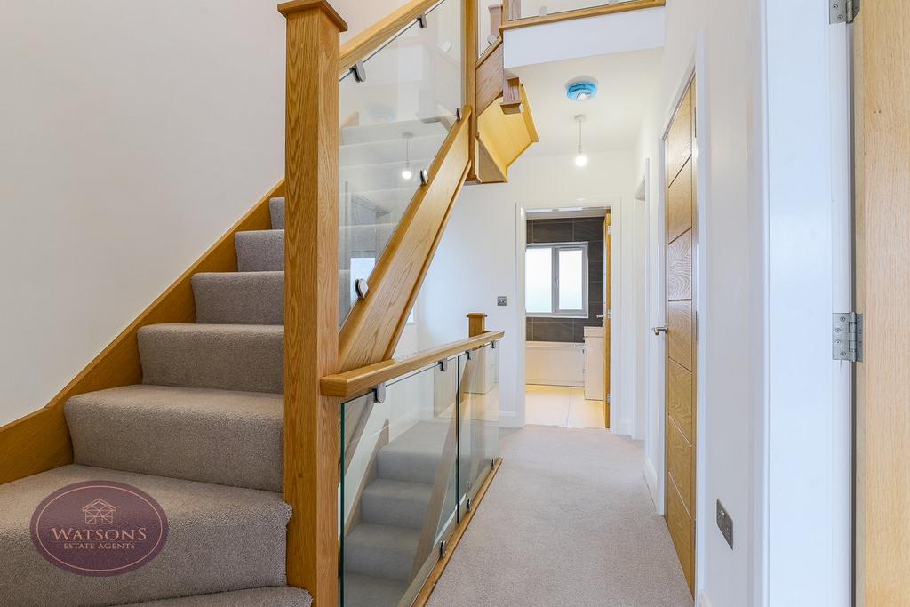 UPVC double glazed window to the side, full height uPVC double glazed window to the front, airing cupboard housing the hot water tank, oak and glass stair case to the second floor. Solid oak doors to bedrooms 2, 3 & 4 and family bathroom.