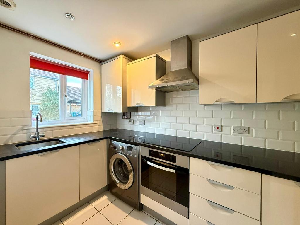 The ground floor opens with a welcoming entrance hall, leading to a convenient cloakroom. To the front of the property, the fitted kitchen provides a practical range of wall and base units with work surfaces over, along with space for a fridge freezer, washing machine and dishwasher. A front-facing window allows natural light to fill the space, creating a pleasant environment for everyday use.