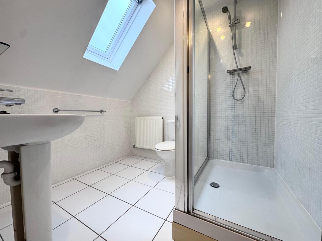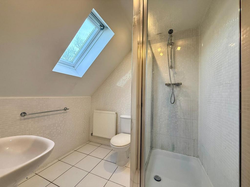 The second floor is dedicated to an impressive main bedroom suite, featuring dual-aspect skylights that flood the room with natural light. There is ample space for both sleeping and working or relaxing, making it a comfortable and flexible retreat. A private en-suite shower room completes the second floor.