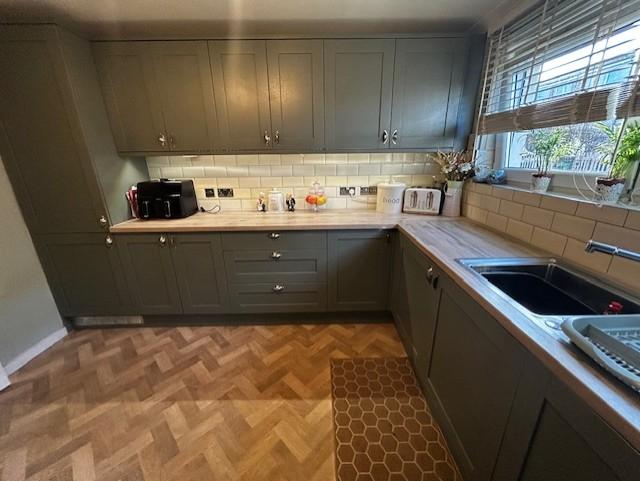 Description: Window Formation to Front of Property, Lino Floor Covering, Ceiling Light and Power Points, Selection of Wall and Floor Mounted Units, Integrated Electric Oven and Gas Hob, Fridge Freezer, Tumble Dryer and Washing Machine,