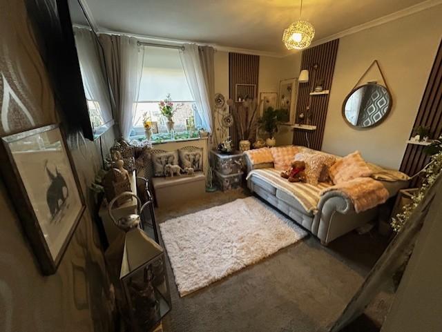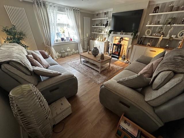 Description: Bay Window Formation with Roller Blind to Front of Property, Feature Electric Fire, Laminate Floor Covering, Ceiling Light and Power Points, Wall Mounted Radiator,