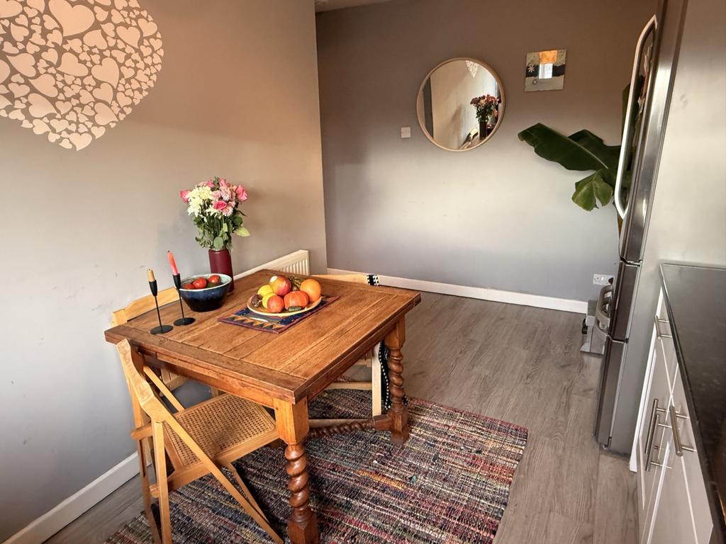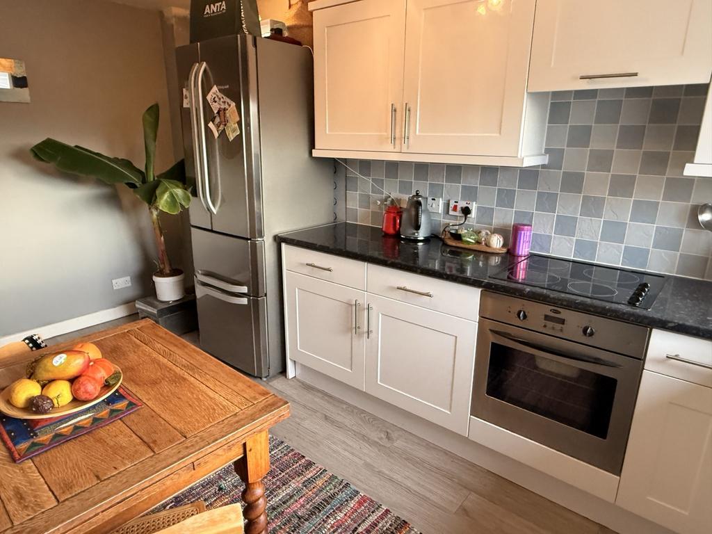 Fitted wall and base units with built in electric oven, hob with extractor hood above. Tiled above the work tops. Washing machine included. Window to the front of the property. Laminate flooring. Radiator. Under stairs storage cupboard housing electric meter and fuse box.