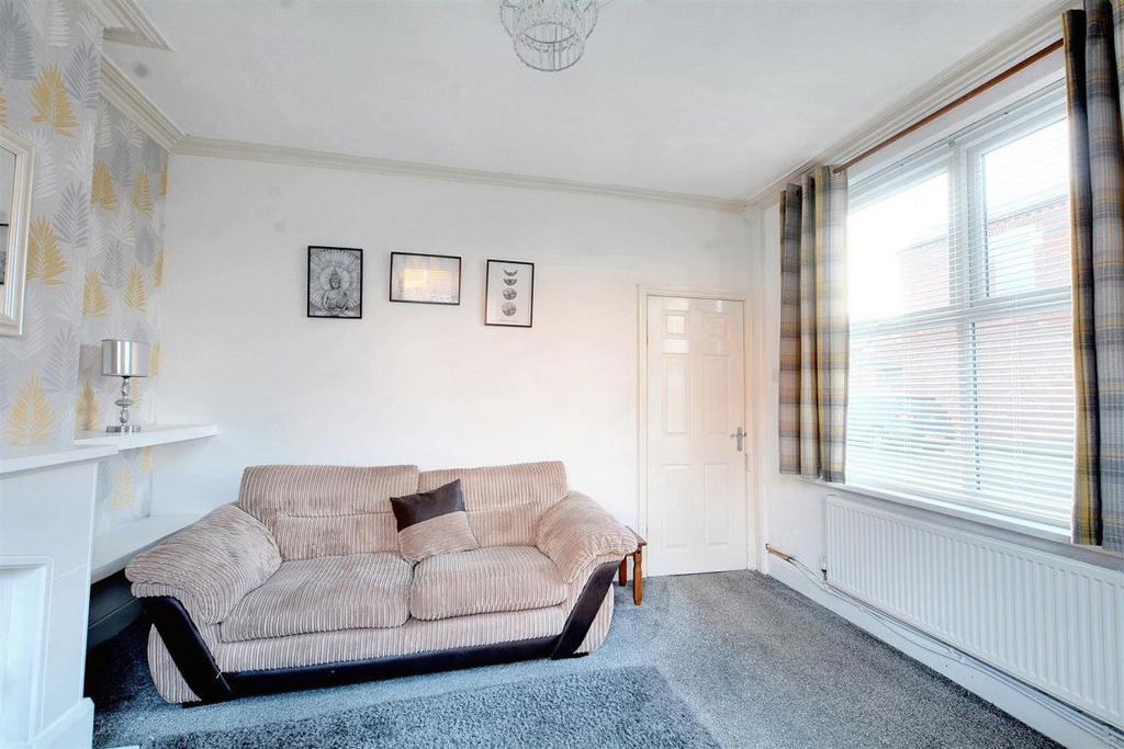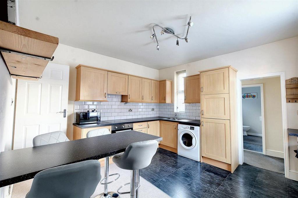 The accommodation comprises a front living room with shelves and electric fireplace, spacious kitchen diner, and a modern ground floor family bathroom.