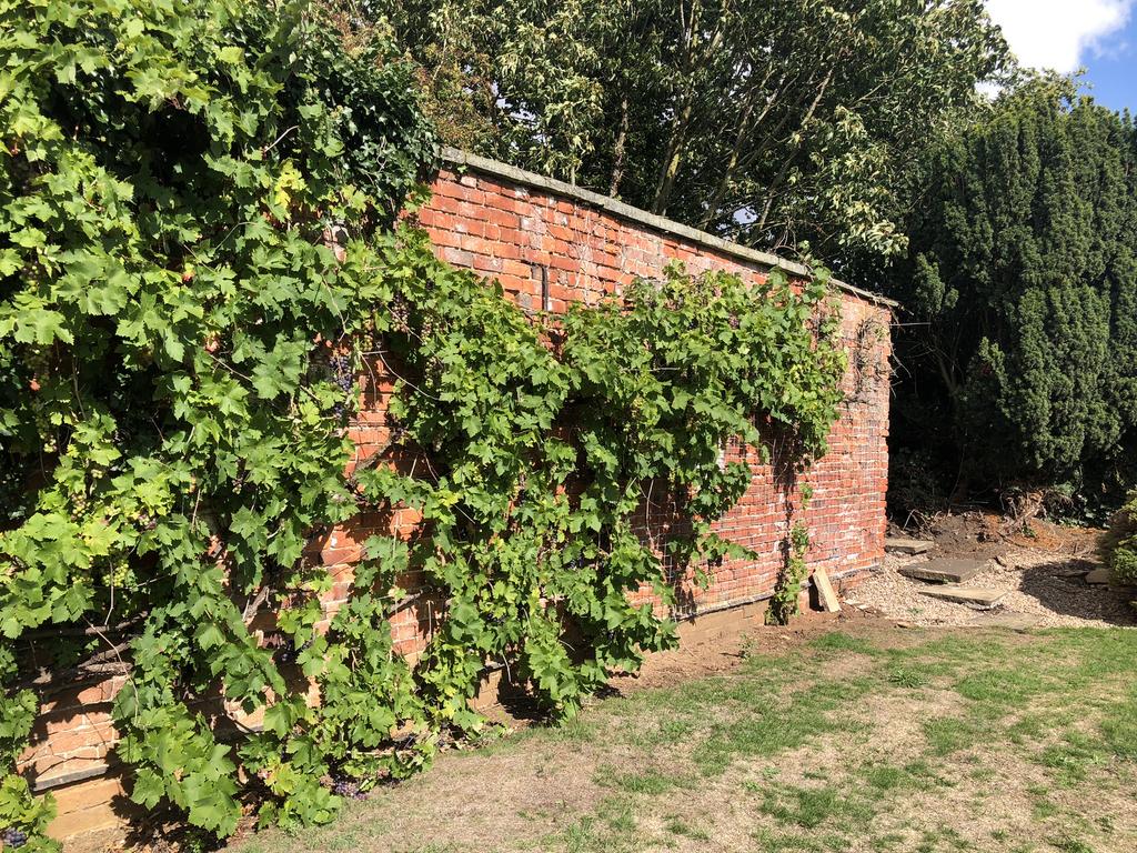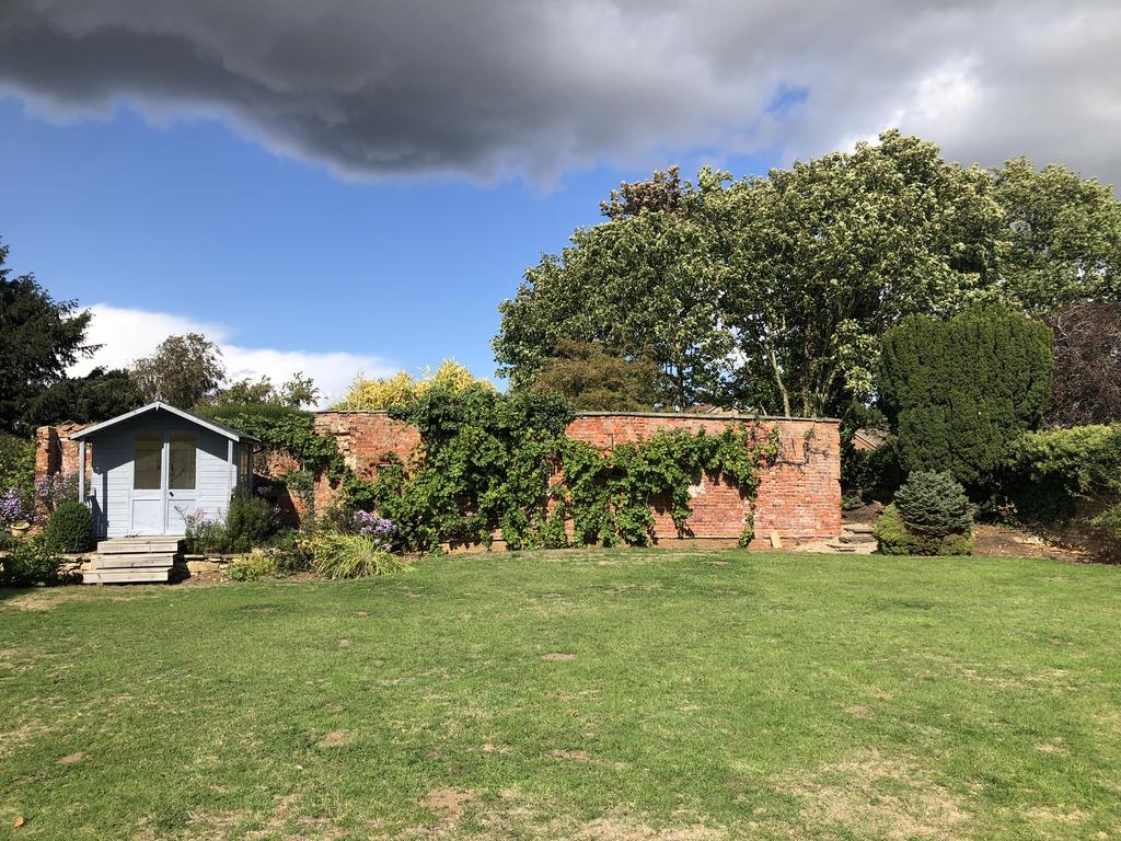 The property sits in a 1.35-acre plot with formal gardens and orchards to the East and North with additional land to the North.