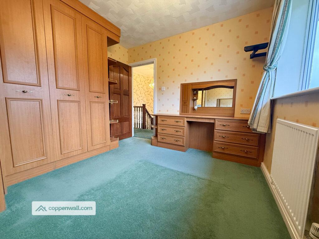 A generous second bedroom, ideal for family members or guests, with fitted with dressing table and wardrobes.