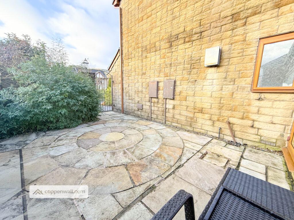 - Rear patio with raised grass area