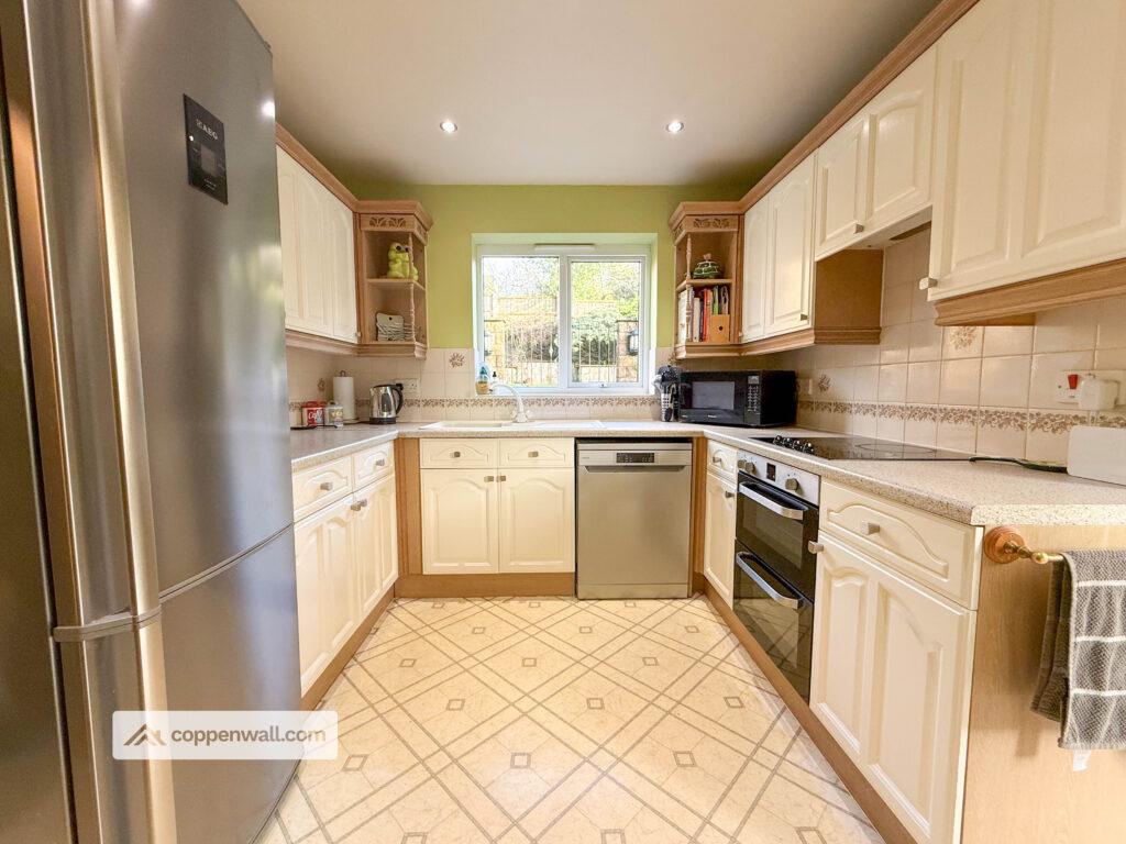 Well-equipped kitchen with ample work surfaces and storage, ideal for culinary endeavours with access to the conservatory.
