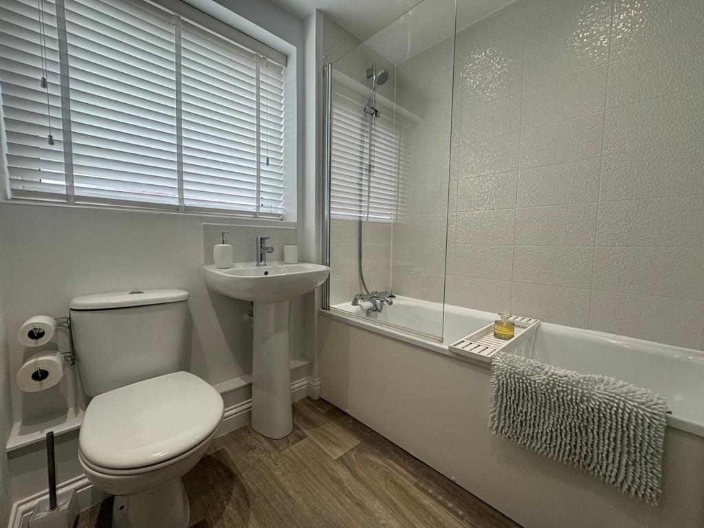 Window to rear, low level w/c, wash hand basin, bath with shower over