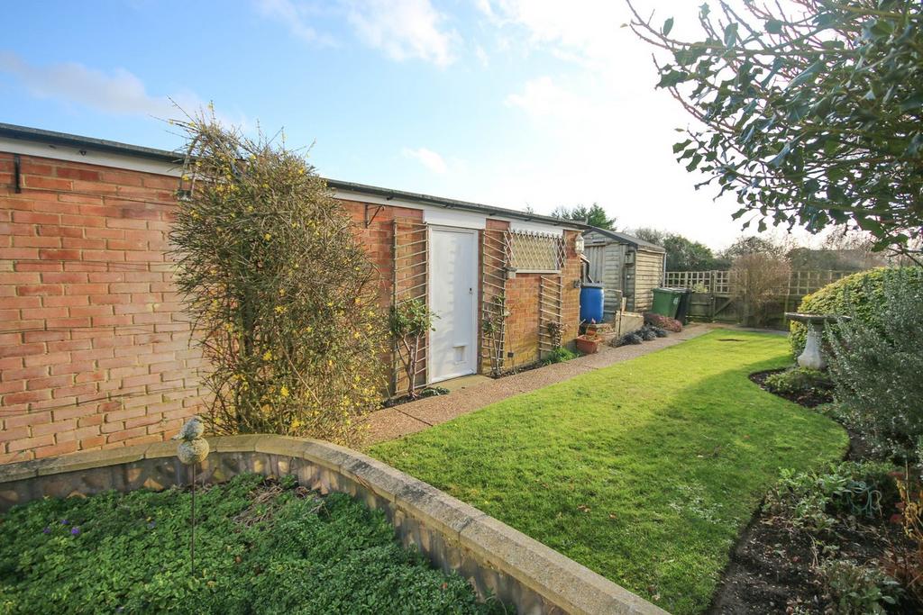 To the front, the garden is laid to a neat lawn and features a driveway providing ample off-road parking, together with a detached brick garage and adjoining workshop/store.