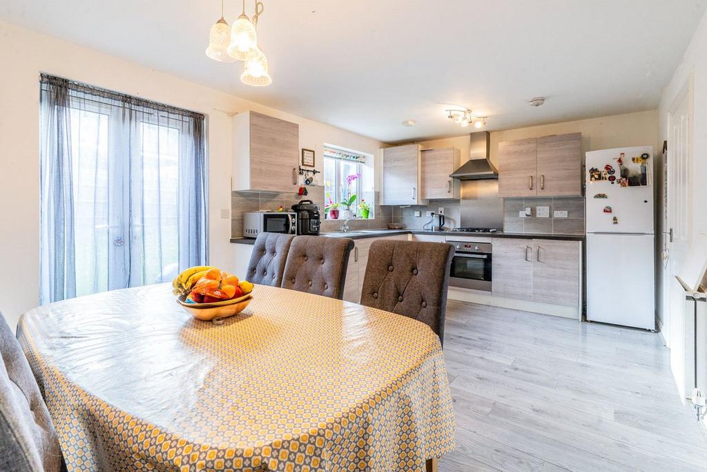 Downstairs you have the lounge, kitchen/diner and separate utility room. The kitchen is often make or break in a family home and this one does not disappoint. Spacious with upgraded units and a high quality finish, it's the perfect heart of a family home. The kitchen has French doors leading out to a nicely sized garden, large enough for the kids to play but without considerable time taken to maintain.