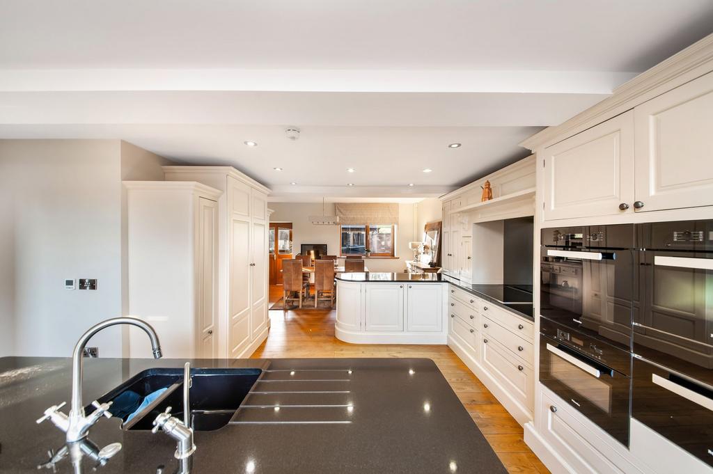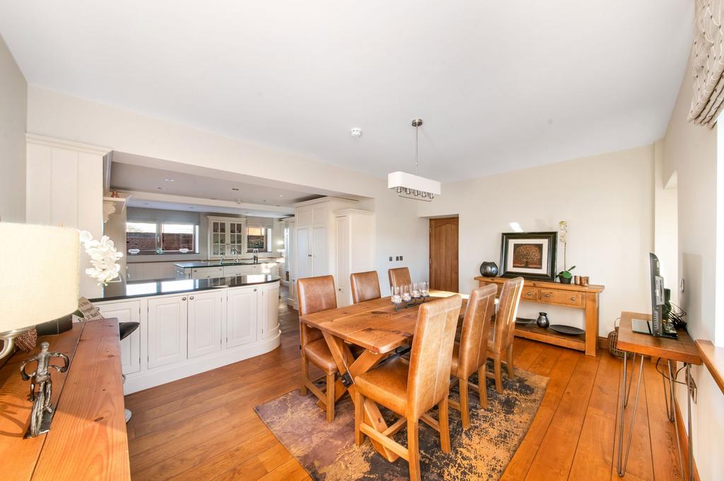 There is a breakfast peninsular with cupboards beneath. The focal point of the kitchen is the fabulous breakfast island with an inset one and a half bowl ceramic sink unit with bevel drainer, Quooker hot water tap as well as a brushed chrome mixer tap above. The kitchen also benefits from under unit lighting, a fabulous butler cabinet and pantry cupboard. There is Fisher and Paykel dishwashers, and the kitchen area then seamlessly leads through to the dining area.