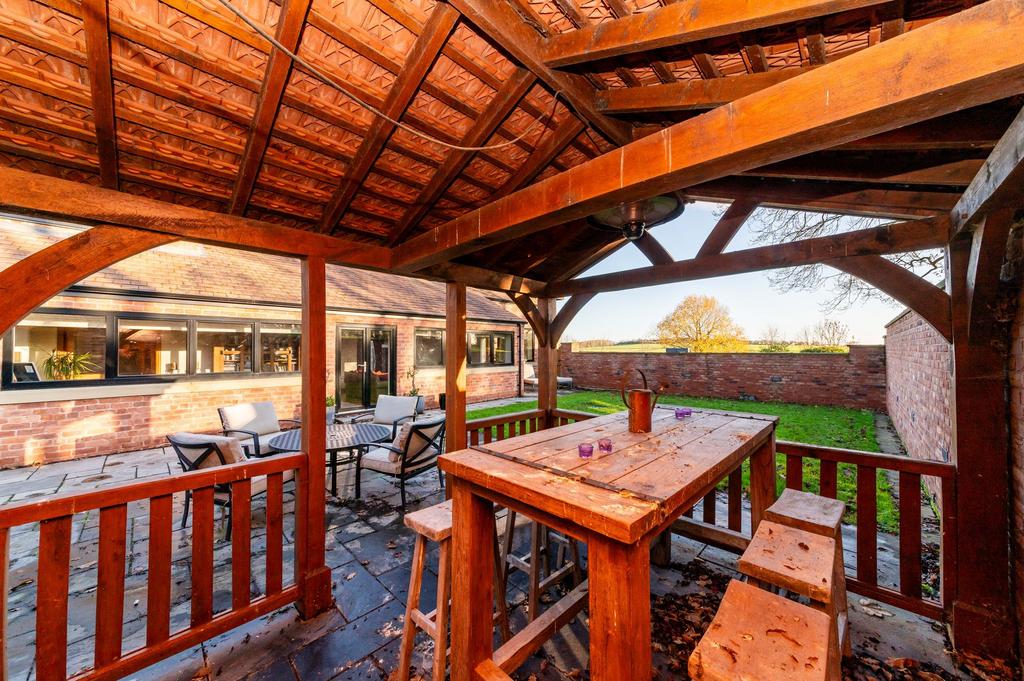 This versatile space can be utilised for a variety of uses and features banks of double-glazed oak windows to the front and side elevations with a pedestrian access door, again, to the side elevation which is sheltered under a canopy. There is lighting and power, attractive flagged flooring and an oak door encloses the W.C. which includes a low-level W.C. and wall mounted wash hand basin.