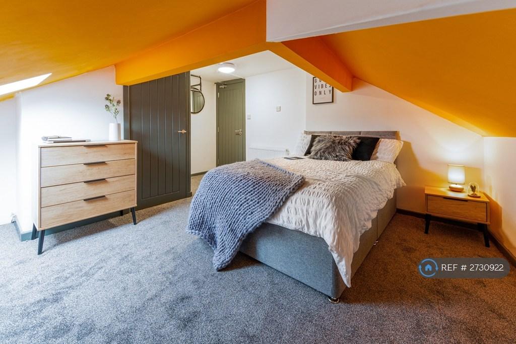 A bright, stylish space with a double bed, wardrobe, desk, and bedside table - everything you need to move straight in.
