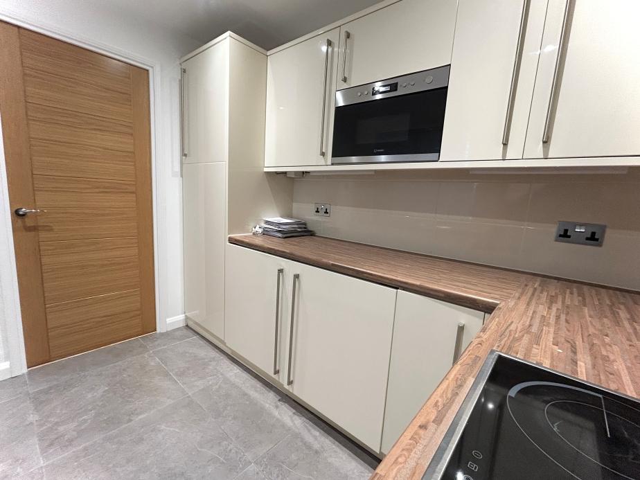 Inside, the flat features a modern fitted kitchen ideal for contemporary living, complemented by a spacious bathroom providing ample room and comfort. The bedroom benefits from built-in wardrobes, offering excellent storage solutions.