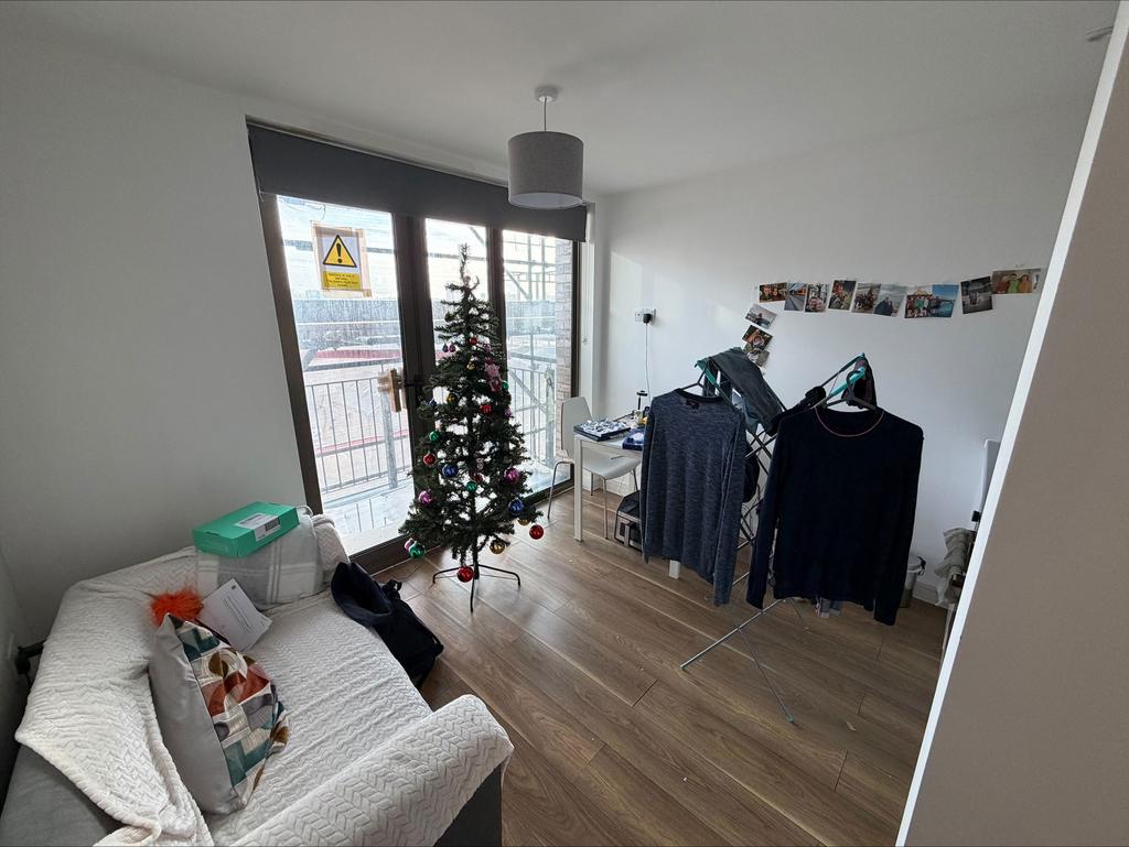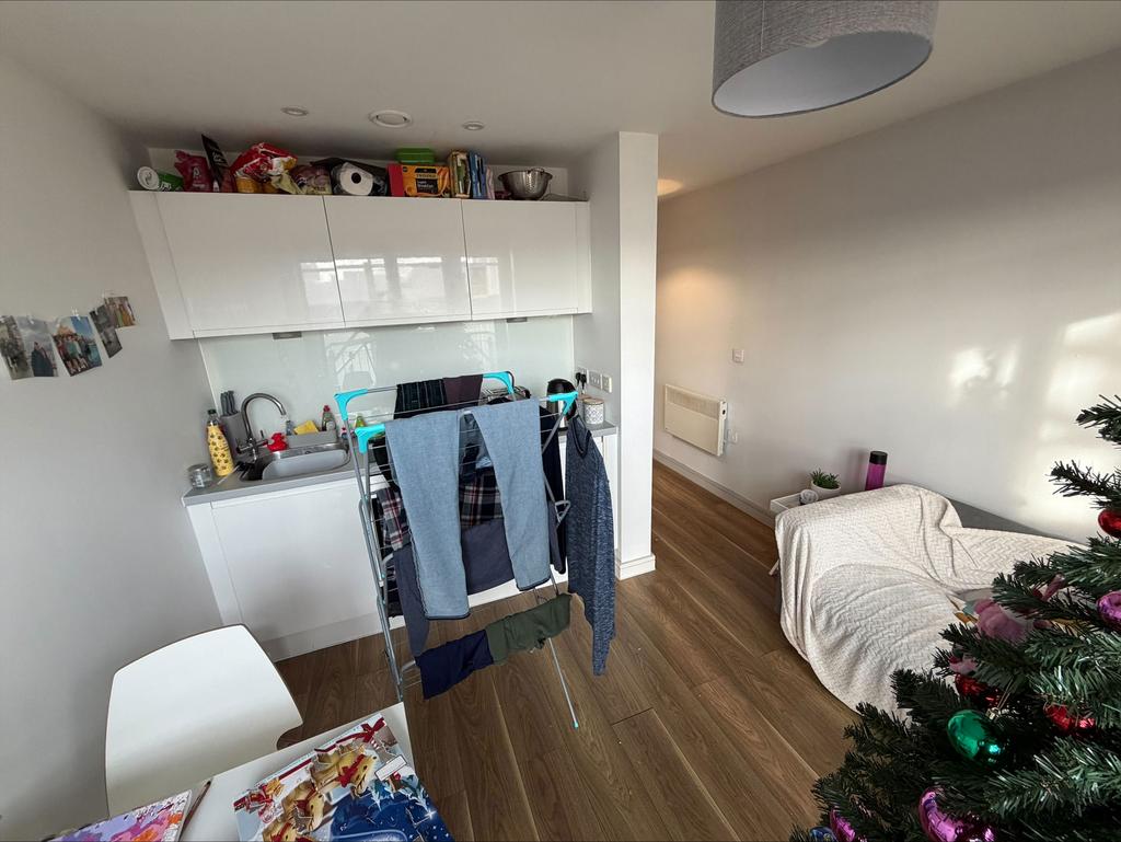 The apartment features a thoughtfully designed open-plan living and kitchen area, maximising space and functionality while creating a bright and modern environment ideal for urban living. The sleeping area comfortably accommodates a double bed and benefits from fitted storage, ensuring practicality without compromising on style. A contemporary shower room completes the accommodation, finished to a high standard with quality fixtures throughout.