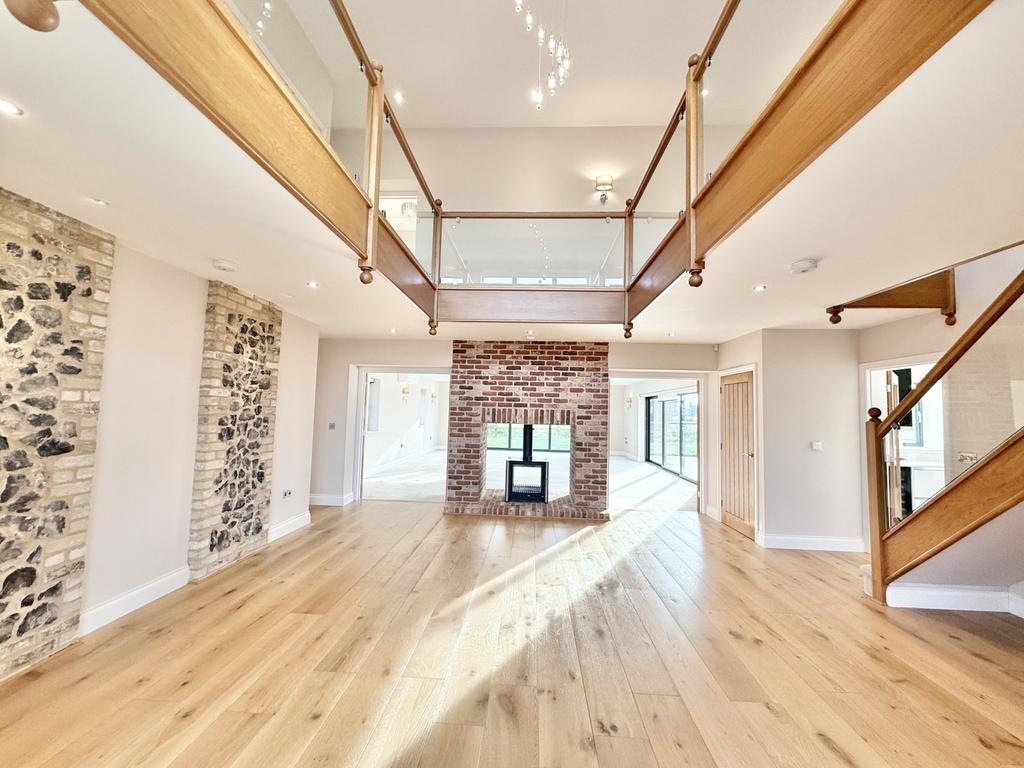 The entrance to the property immediately gives you an indication to the quality and scale of this property with full height ceilings, exposed feature wall, solid wood floor and an open log burner being its key features.