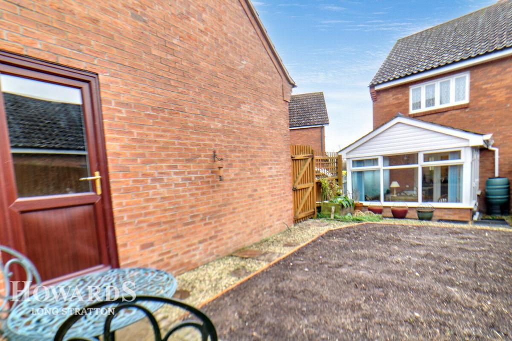 Laid to lawn garden with two patio area's, upvc double glazed personal access door to garage, the garage has power, lighting, loft access space, electric garage door and a brick weave drive to the front of the garage.