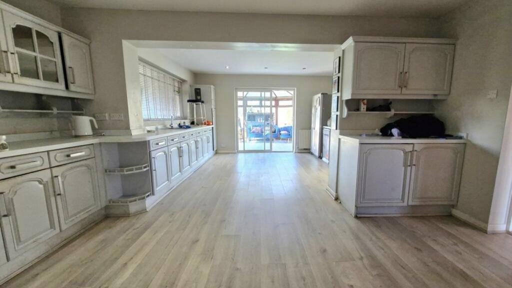 A substantial detached family home set on a generous plot, offering flexible living space and extensive parking and garaging. With four double bedrooms, multiple reception rooms, a large kitchen diner, conservatory and excellent storage throughout, this property suits families or professional tenants looking for space, privacy and versatility. The home sits within well maintained front and rear gardens and benefits from multiple garages, including a large double garage to the rear. EPC rating E. Council Tax Band F.