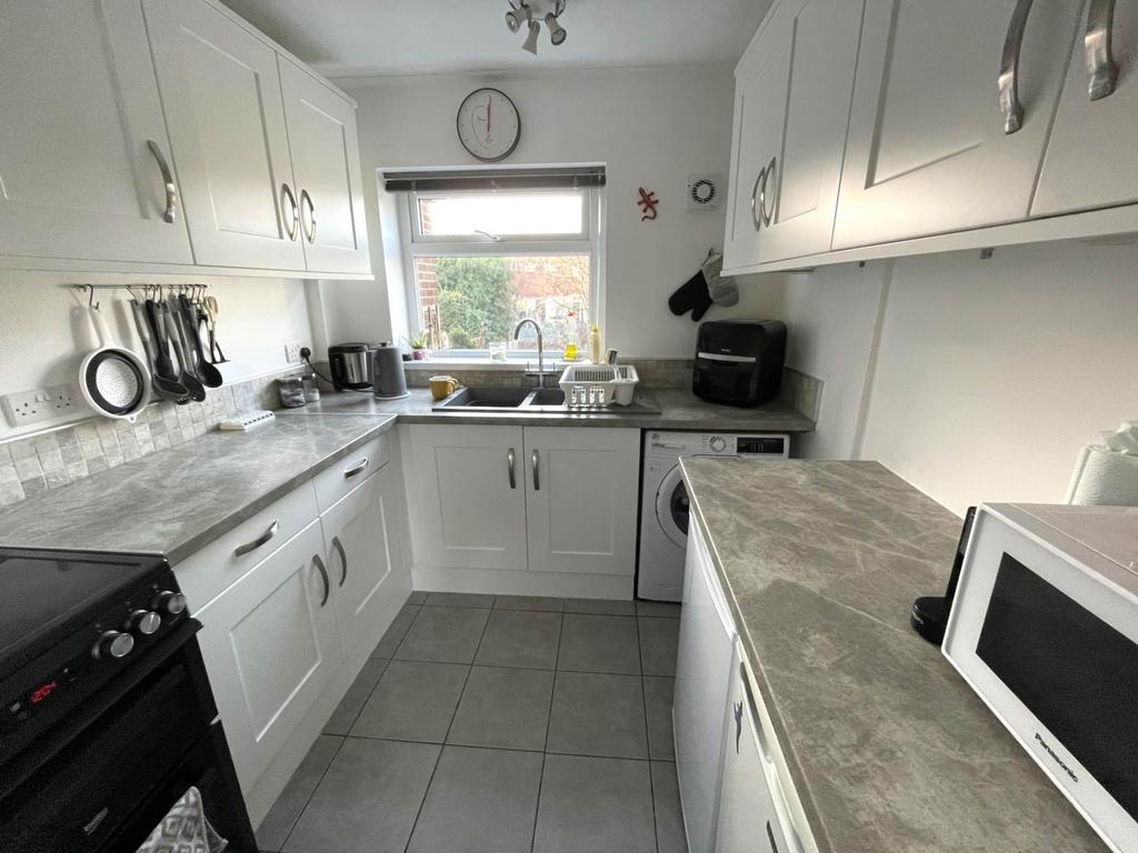 With a modern range of wall and base units, one and a half bowl sink unit, space for oven, plumbed for washing machine and UPVC double glazed window.