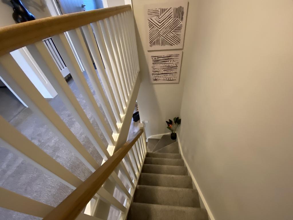Central heating thermostat for the under-floor heating, stairs to first floor landing, door to: