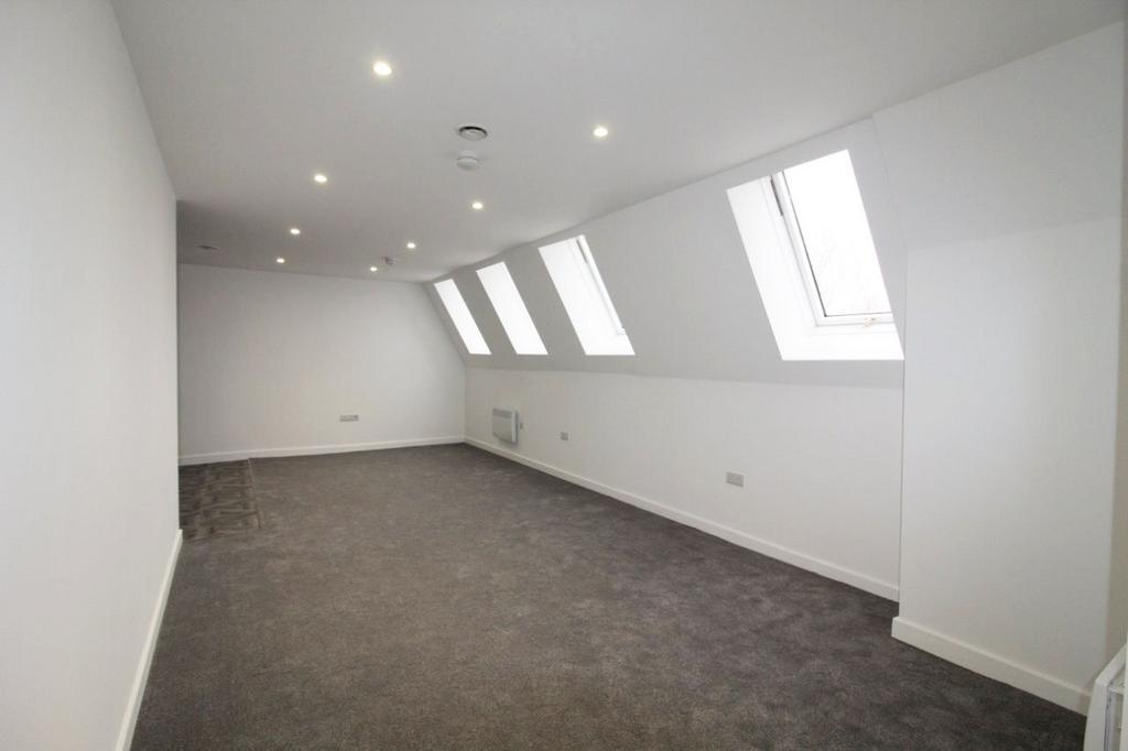 The apartment features an open-plan layout with large double-glazed windows that allow plenty of natural light. The neutral décor with light grey carpet makes the space feel bright, modern and versatile. The kitchen includes an electric hob, integrated oven, washing machine and fridge/freezer. There is also a stylish bathroom with walk-in shower.
