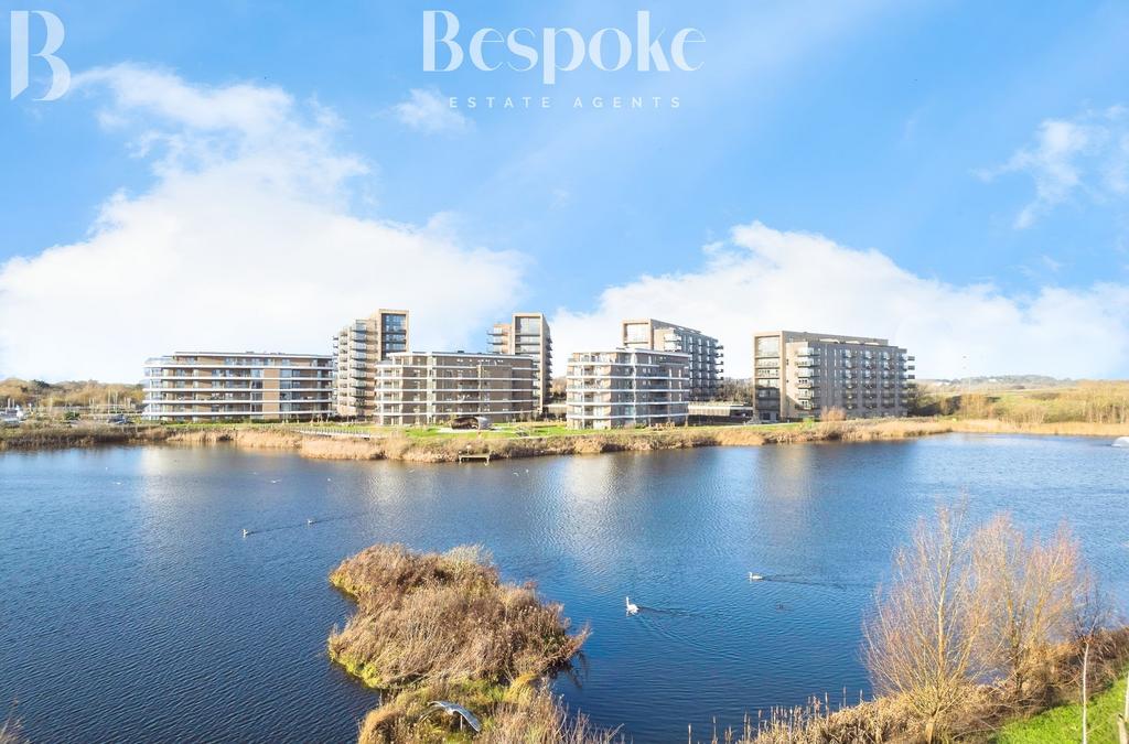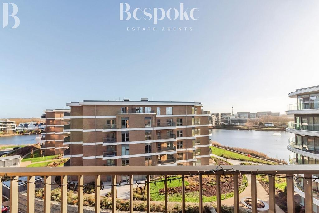25% Shared Ownership. This beautifully presented one-bedroom apartment showcases contemporary design throughout, offering a thoughtful balance of comfort, style and practicality. The property features a bright and spacious open-plan living area, seamlessly incorporating a modern fitted kitchen with sleek cabinetry, integrated appliances and stylish open shelving. Floor-to-ceiling glazing floods the space with natural light and opens directly onto a private balcony, where attractive lake views create a calm and relaxing outdoor setting.