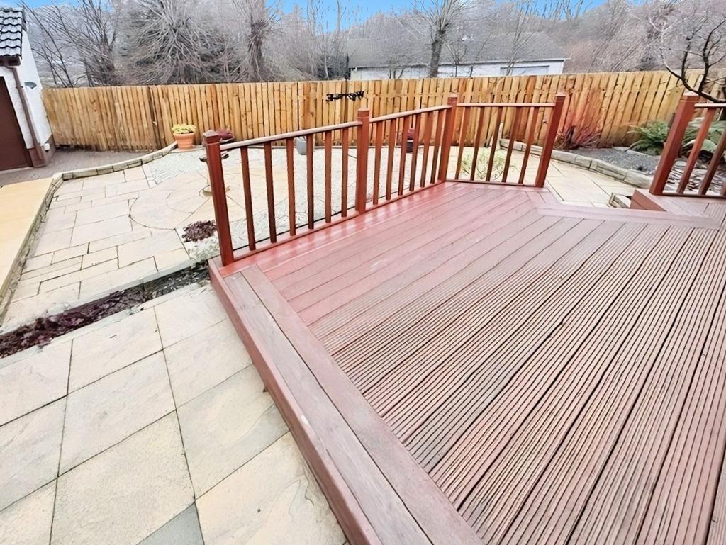 Private fence enclosed garden. Paved terraced, Decking leads to Summerhouse. Security lighting. Rear access to garage.
