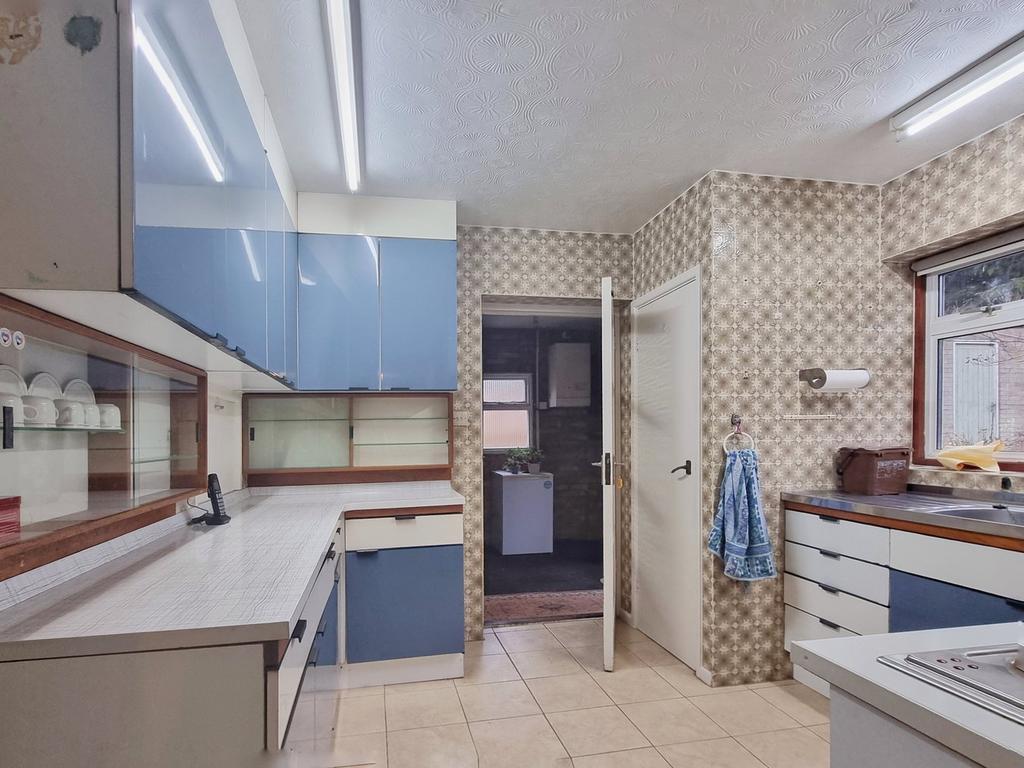 8' 3" x 7' 2" (2.51m x 2.18m) Window to side, door to garage and rear gardens, wall mounted boiler, radiator.