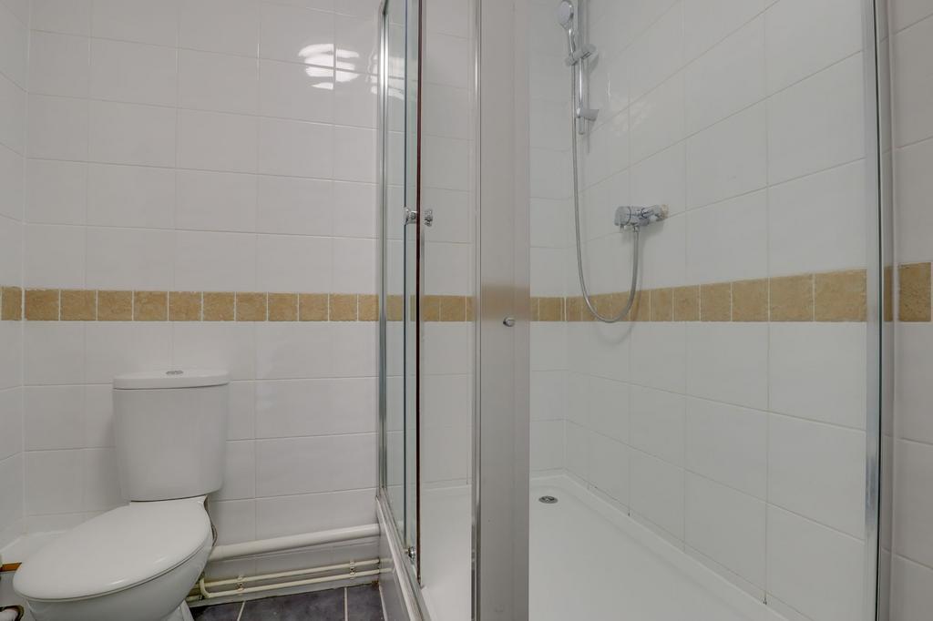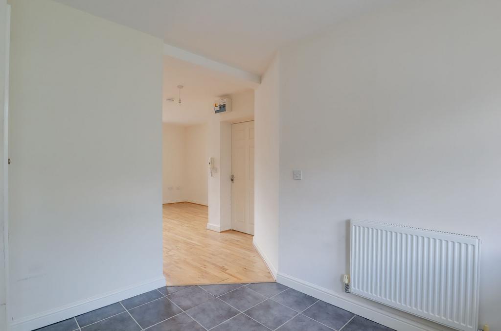 The kitchen is fitted in a white high-gloss shaker-style finish and includes an electric single oven, hob and extractor fan, offering a clean, modern look with practical layout. The shower room is well appointed and features a large 120cm shower enclosure. The double bedroom is a comfortable size and will benefit from newly fitted carpet prior to occupation.
