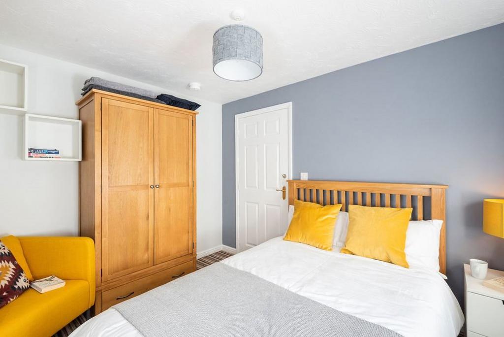 This large double room is furnished with a double bed and mattress, a built in wardrobe, a chest of drawers, desk and armchair. The room has a modern en-suite fully equipped with three piece suite mirror and fittings. Downstairs, there is a modern communal kitchen area with fridge/freezer, washing machine, dishwasher, dining table and separate w/c.