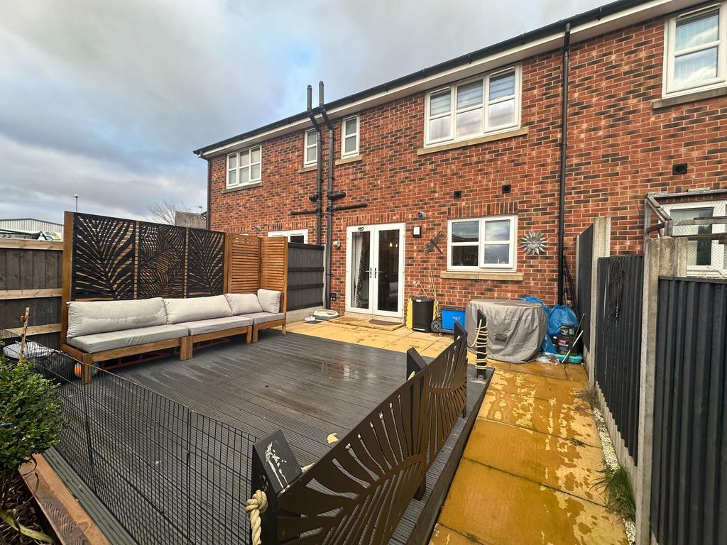 To the front is a driveway for 1-2 cars, part block paved and part tarmac. To the rear is a south west facing garden, patio and decked area, boundary fencing, outside power supply, outside lighting, gate to the rear for bin access.