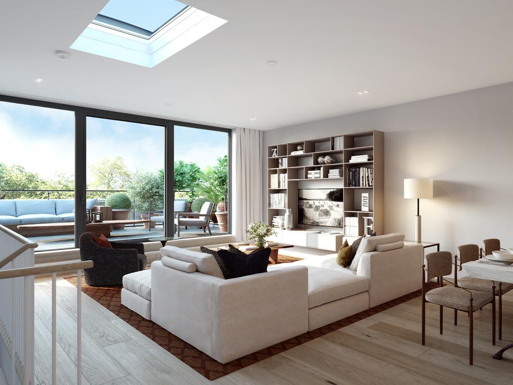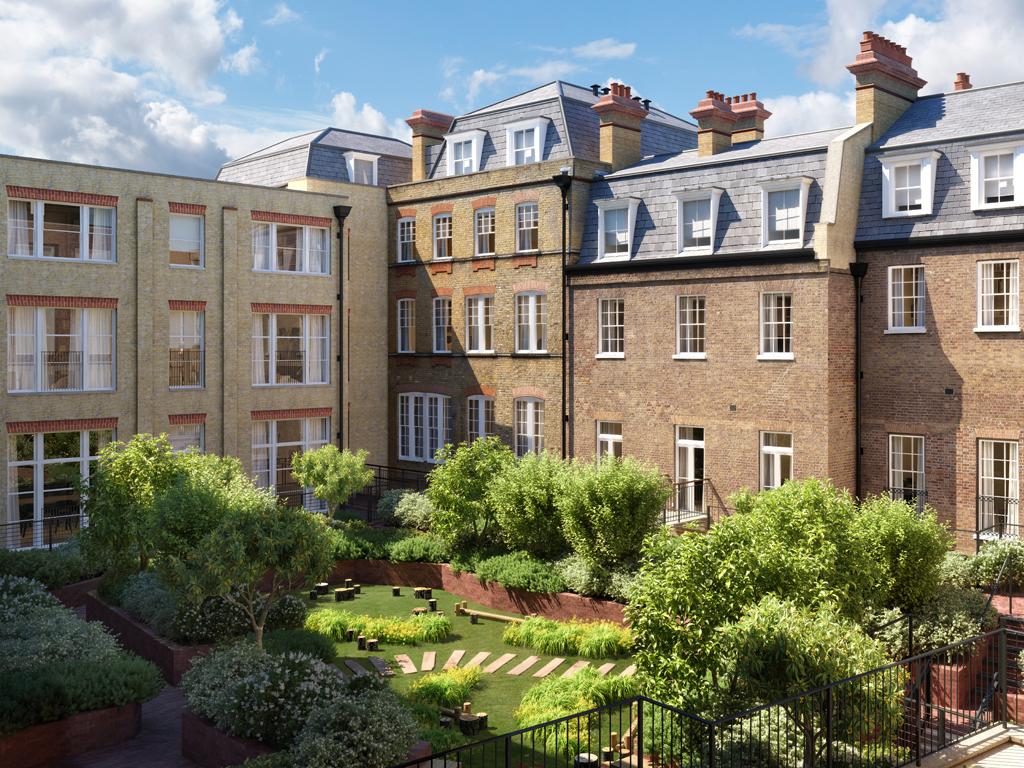 Many apartments feature private terraces with stunning views over the Old Deer Park, Kew Gardens, Central London, and the tranquil landscaped courtyard.
