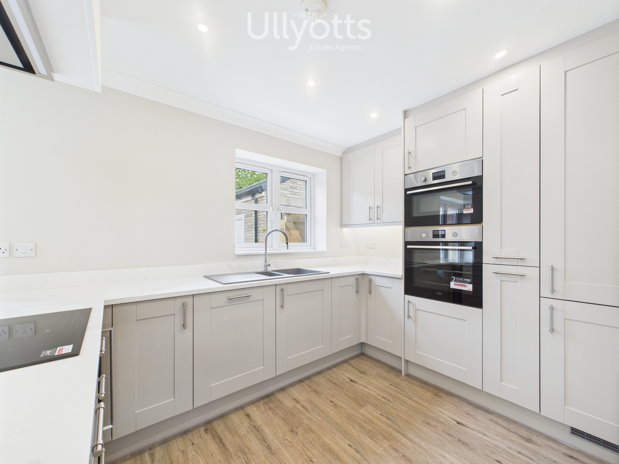 Upon entering, a welcoming hallway greets you, leading directly to a practical ground floor WC and a dedicated utility cupboard—perfect for keeping laundry organised and out of sight. Step into the expansive kitchen and dining area, flooded with natural light thanks to elegant double doors that open onto a private patio and enclosed garden, providing the perfect backdrop for al fresco dining or relaxing summer evenings. The considered layout ensures family gatherings and entertaining are a delight, while the separate utility space keeps the living areas immaculate and clutter-free.