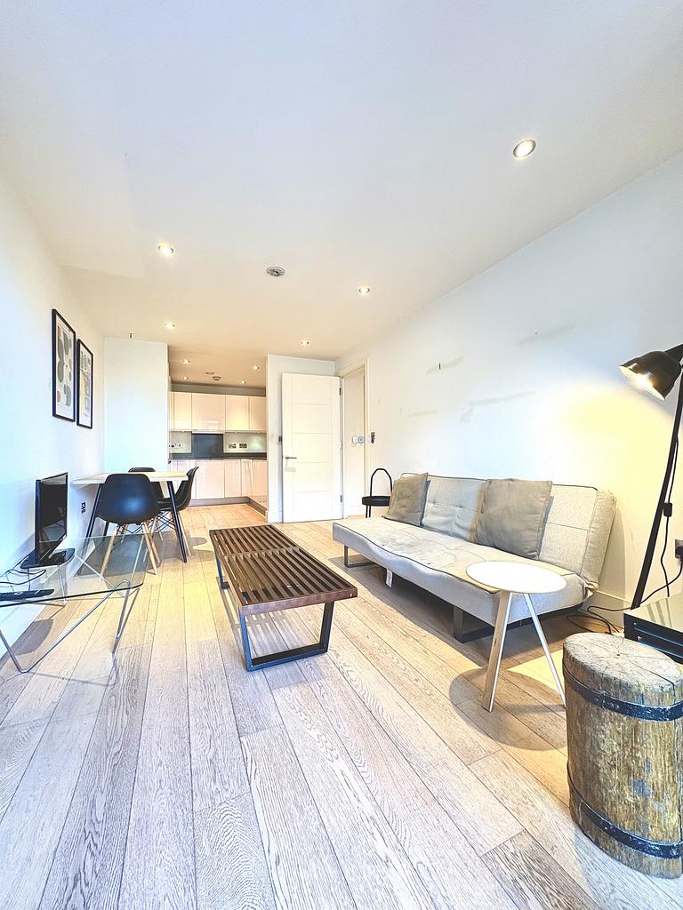 This fantastic one bedroom flat is located on the 2nd floor of the 'This Minton court' on Fairfield Road. The flat is fully furnished throughout in a contemporary modern style giving it a bright spacious feel. There is an open plan kitchen, living and dining area which features a sofa bed, coffee table, armchair and dining table and 4 chairs. This room also provides access to a lovely little balcony with outdoor furniture. The kitchen area is fully fitted with integrated modern appliances to include a dishwasher, washing machine and microwave. All smaller kitchen appliances and utensils are also provided. The bedroom is a good size and comprises of a large double size bed, bedside tables and a built in wardrobe. The modern fully tiled bathroom is also a great size and has both a bathtub and power shower.