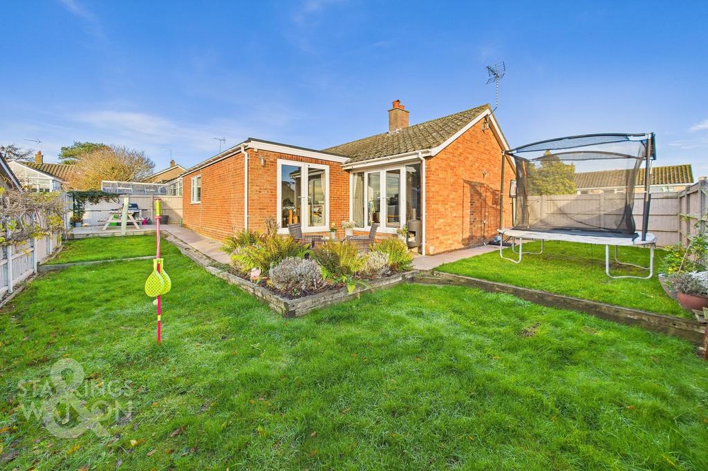 Situated in a desirable residential location, this IMPRESSIVE DETACHED BUNGALOW offers over 1200 sq. ft (stms) of EXTENDED and WELL-PLANNED accommodation, ideal for modern family living. The welcoming entrance hall leads to a spacious 19' DUAL ASPECT SITTING ROOM, featuring FRENCH DOORS that open directly onto the garden, creating an inviting space for relaxation or entertaining. The heart of the home is the 19' KITCHEN/DINING ROOM, designed for both every-day living and special occasions. THREE GENEROUSLY SIZED BEDROOMS include a 16' MAIN BEDROOM with a modern EN SUITE SHOWER ROOM, whilst the additional bedrooms are served by a stylish 8' FAMILY BATHROOM which offers POTENTIAL to REMODEL and enjoys a LIGHT and BRIGHT FEEL via the VELUX WINDOW above. The property boasts ample storage throughout, with thoughtful touches that enhance comfort and practicality. The layout FLOWS SEAMLESSLY, making the most of natural light and garden views from principal rooms. The SPLIT LEVEL WRAP AROUND GARDENS provide a tranquil retreat and plenty of space for outdoor enjoyment. LAWNED GARDENS extend to the side and rear, enclosed by timber fencing for privacy and security. Gated access leads to the front driveway, which provides off-road parking and access to a 16' GARAGE with an up and over door, power, and lighting. To the rear of the garage, a 10' STORAGE ROOM offers additional utility space or potential for conversion (stp).