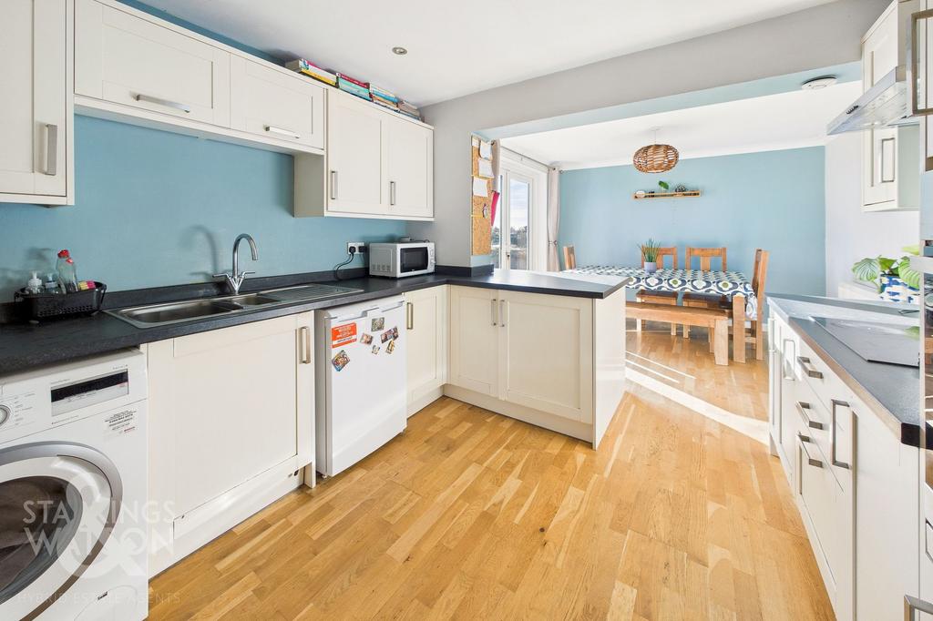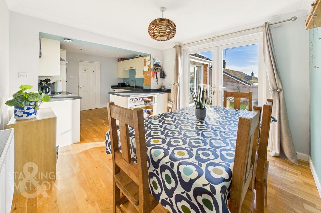 Stepping inside, the hall entrance offers wood flooring underfoot whilst providing the ideal space for coats and shoes, with a further door taking you to the main hall entrance finished with wood flooring and a useful built-in storage cupboard. Doors lead off to the main bedroom and living accommodation with a loft access hatch above. The main sitting room enjoys dual aspect views to front and rear, with continued wood flooring underfoot, and French doors leading out to the rear patio. The kitchen offers an extended dining space, with a modern fitted range of wall and base level units including an inset electric ceramic hob with an extractor fan above and built-in eye level electric oven. Space is provided for general white goods including a fridge and washing machine, with wood flooring flowing underfoot, space for a dining table and French door leading out to the rear garden. From the hall entrance, doors lead off to three bedrooms - all of which are finished with fitted carpet and uPVC double glazing. The second bedroom includes a built-in wardrobe with sliding doors, whilst the main bedroom enjoys garden views and a door to a private ensuite - finished with a modern white three piece suite. A corner shower cubicle includes a thermostatically controlled shower with tiled splash-backs and flooring along, with a heated towel rail. Completing the property is the family bathroom which is a spacious room including a three piece suite with potential to incorporate a separate shower cubicle if required. At present a thermostatically controlled shower can be found over the bath, with tiled splash-backs and velux window above.