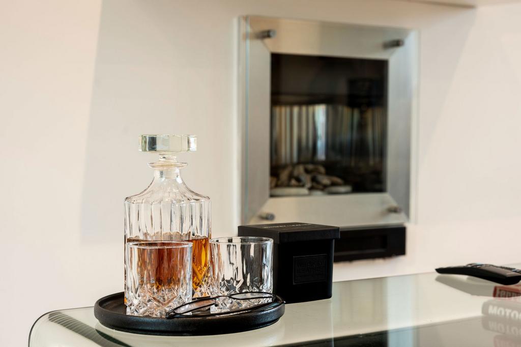 Upon arrival, the impressive reception hall that is flooded in natural light from a stunning floor-to-ceiling window, shows off a floating staircase and glass banister, setting the tone for the modern luxury that flows throughout the house.