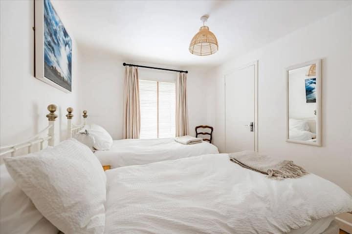 Each bedroom offers a calm and restful retreat: the master features a comfortable double bed, while the second has twin beds and its own en suite toilet. A contemporary family bathroom is situated on the ground floor. Step outside to enjoy your own private garden—an ideal spot for alfresco dining or simply savouring a morning coffee as the town stirs to life.