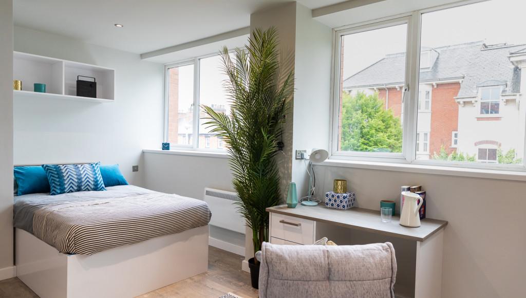 The studio is fully furnished and thoughtfully arranged to maximise space and practicality. It includes a small double bed with under-bed storage, a spacious wardrobe, and a dedicated study desk, creating an ideal environment for both studying and relaxation. Comfortable seating and a TV provide a welcoming space to unwind, while super-fast broadband ensures seamless connectivity at all times.