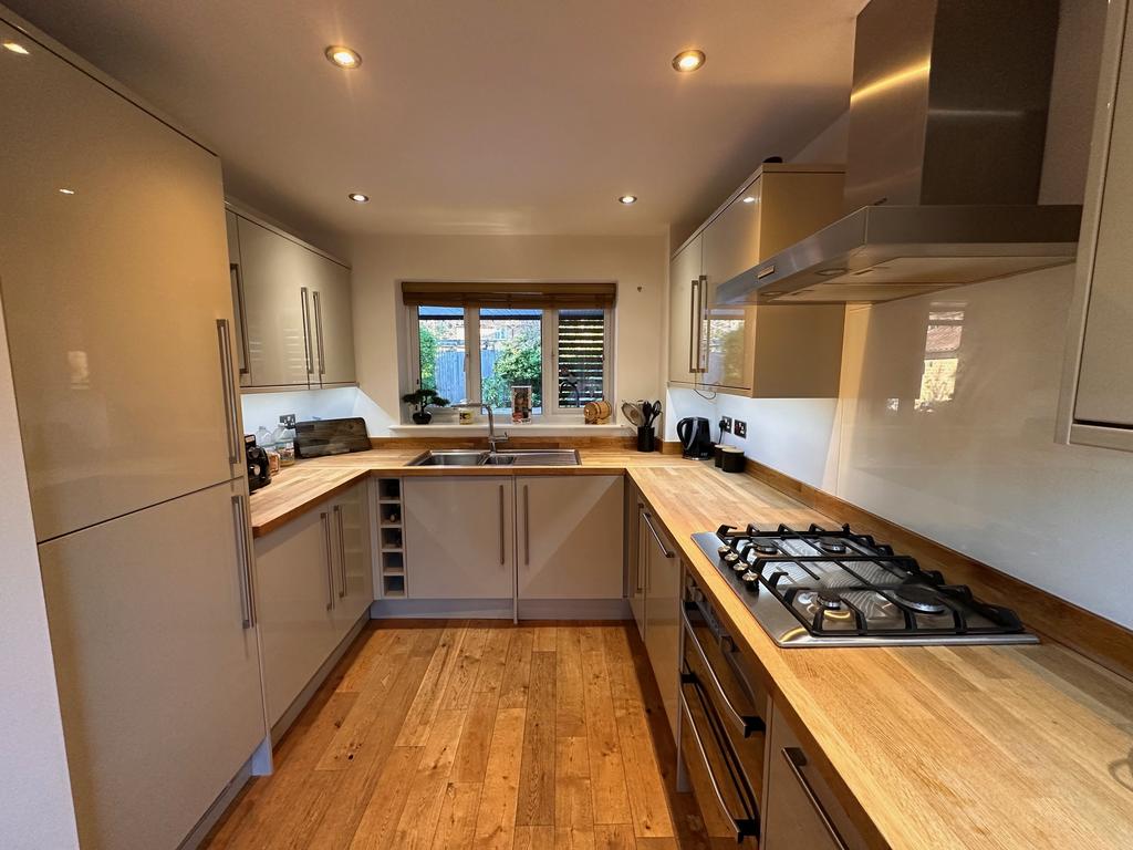 KITCHEN/DINING ROOM: - (14'7 x 8'8) A fully fitted kitchen with real wood work surfacing, one and a half bowl sink with mixer taps and drainer, built in electric oven with four ring gas hob and extractor above, built in fridge freezer, built in dishwasher, built in washing machine, rear aspect double glazed window.