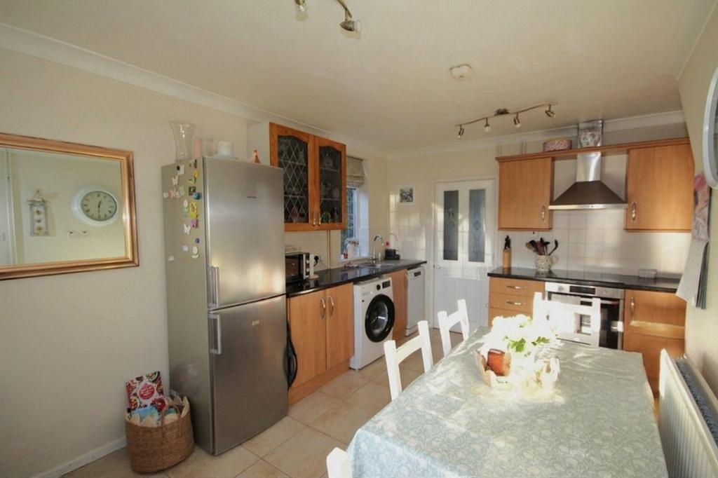 Kitchen/Diner 15' x 12'5 > 9'5 (4.57m x 3.81m > 2.87m): Fitted with matching range of base and eye level units with worktop space over, stainless steel sink with mixer tap, plumbing for washing machine, space for fridge/freezer, electric oven, electric induction hob with extractor hood over, windows to front, side and rear elevation, radiator, tiled flooring, understairs door to storage cupboard.